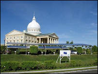In 2009 two new solar projects were completed at the national hospital and state recycling centre in Koror. The PPUC created a Renewable Energy Division in 2010 tasked with the responsibility of managing current PV systems and pursuing new renewable energy platforms. This is consistent with Palau’s National Energy Policy, which identifies a target of 30% reduction in overall national energy consumption by the year 2020 and a minimum of 20% of electrical energy generated by renewable energy by the end of 2020. In 2010 solar streetlights were installed at intersections along the Compact Road that circles the main island of Babeldaob to improve the safety of driving. In December 2011 Palau international airport switched on a 226kW solar panel array, supplied by Kyocera Corporation and funded by the Japanese government’s Official Development Assistance. This solar farm is made up of 1,080 Kyocera 210 watt solar modules. Kyocera estimates the system will generate 250 megawatt-hours of electricity annually, avoiding approximately 80 tonnes of carbon dioxide emissions each year. The solar panels are also acting as a shade structure; having been installed in the airport's parking lot. Due to the prevalence of cyclones in the region, the back of the modules have been reinforced with extra support to increase wind-pressure resistance.